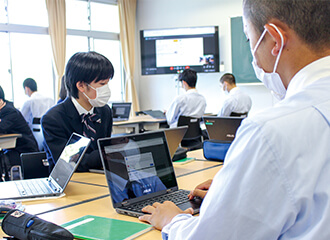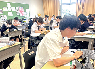 本校では「自ら学び、自ら考える力」を育てることをモットーに、教員全員が生徒の学ぶ意欲を最大限に引き出すための授業を展開しています。