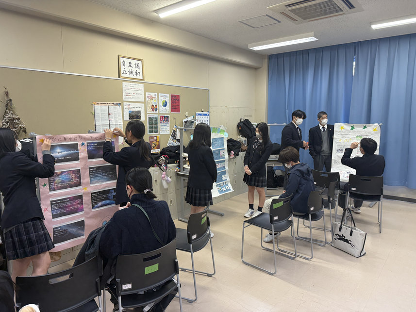 授業参観での総合探究では,生徒たちの主体的に学ぶ様子をご覧いただきました。