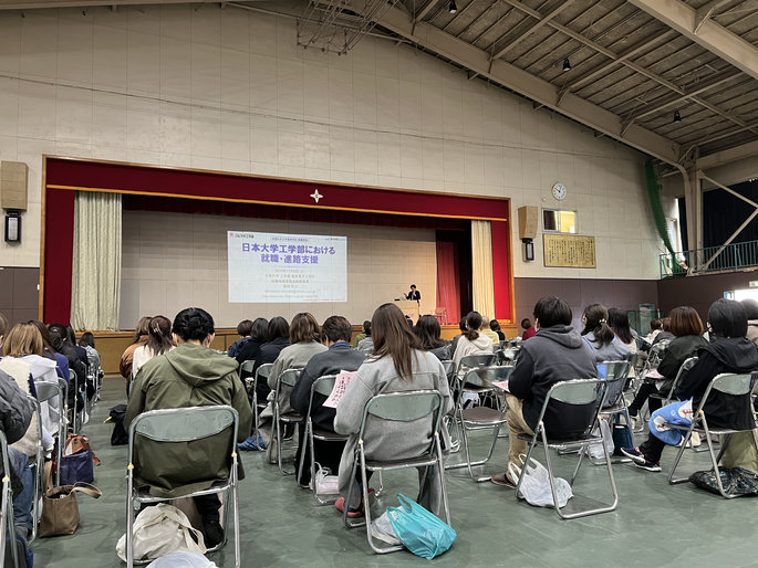 また、進路講演会では,日本大学工学部 就職指導委員会副委員長の高梨宏之先生にお越しいただき,大学における就職・進路支援について、具体的なデータを交えてご講演いただきました。