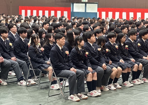 令和8年3月2日(月),令和7年度卒業式を挙行いたしました。式後の最後のホームルームでは,卒業生一人ひとりが級友や保護者へ感謝の思いを伝える姿が非常に印象的でした。3年生182名は,新たな決意を胸に学び舎を巣立っていきました。