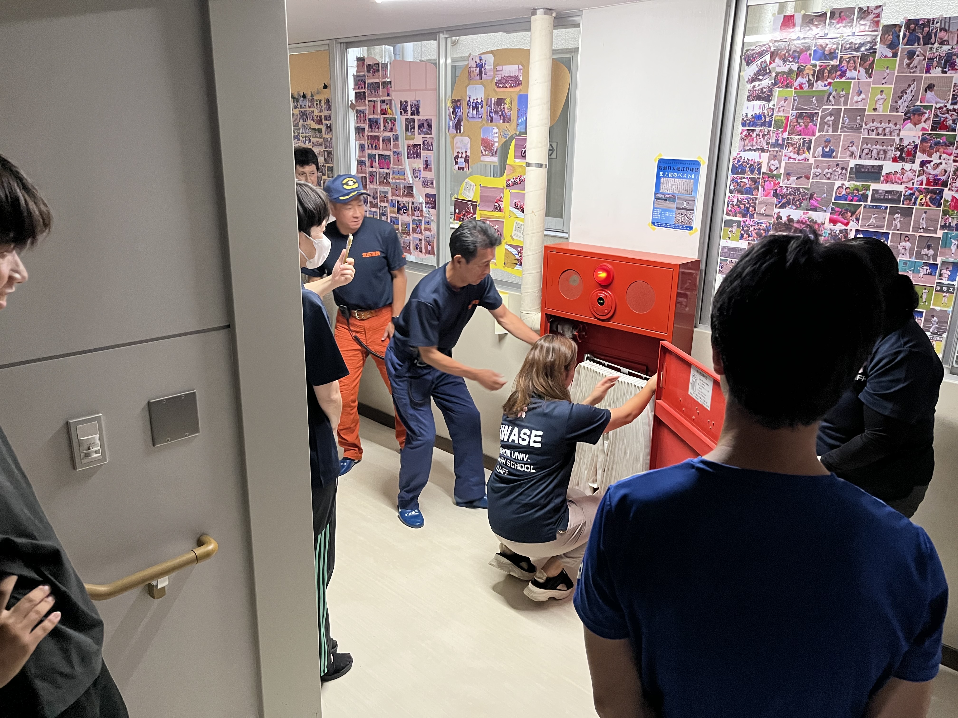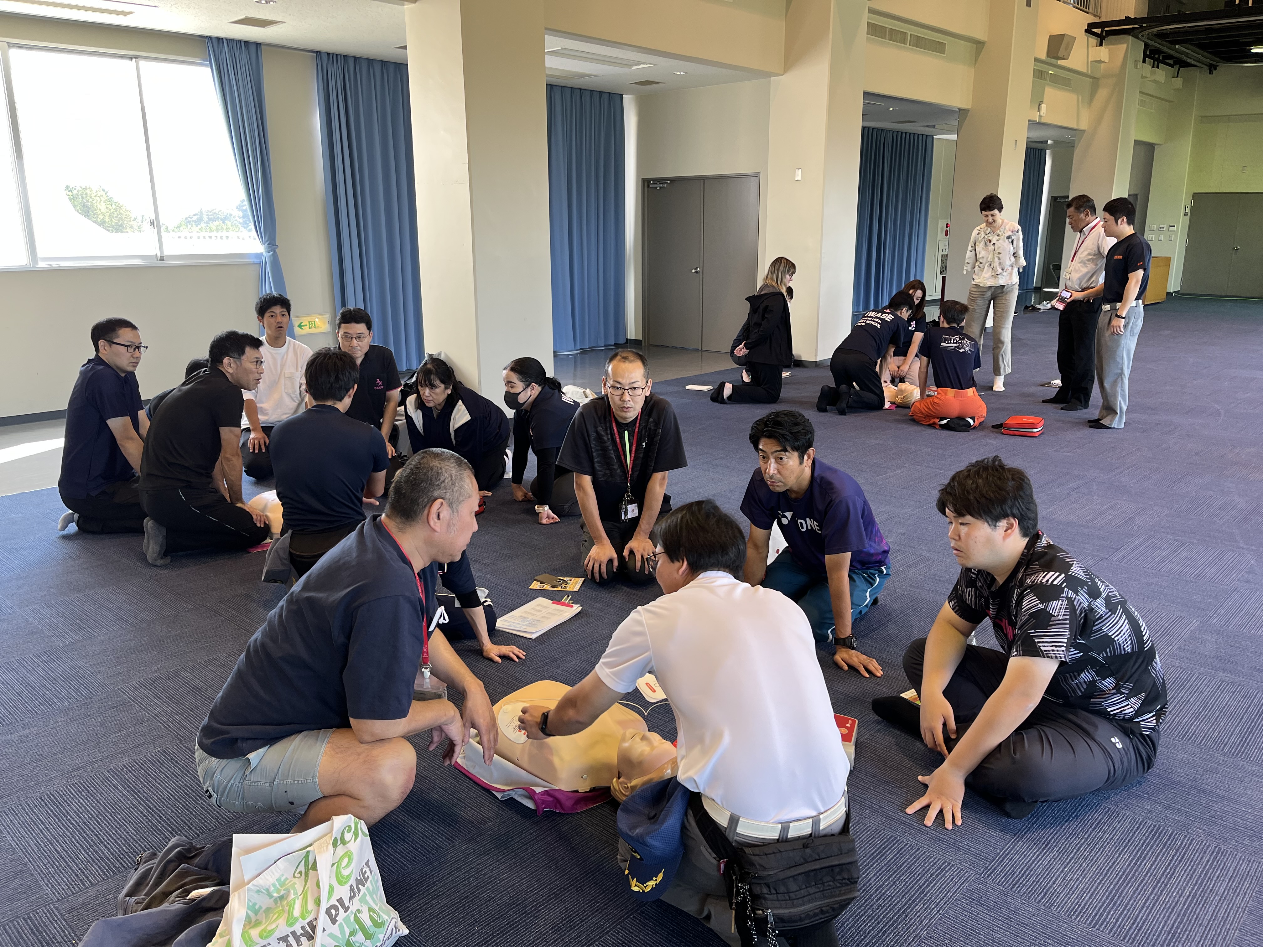 また、午後からは桜川市消防署の方々をお招きし,教員対象の防災研修会を実施しました。救急救命や消火栓の使い方,避難訓練について確認し,生徒の安全を考える研修となりました。