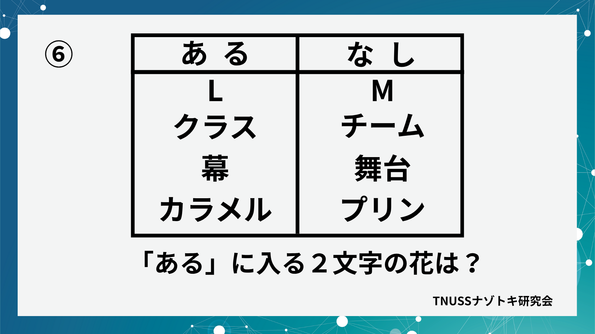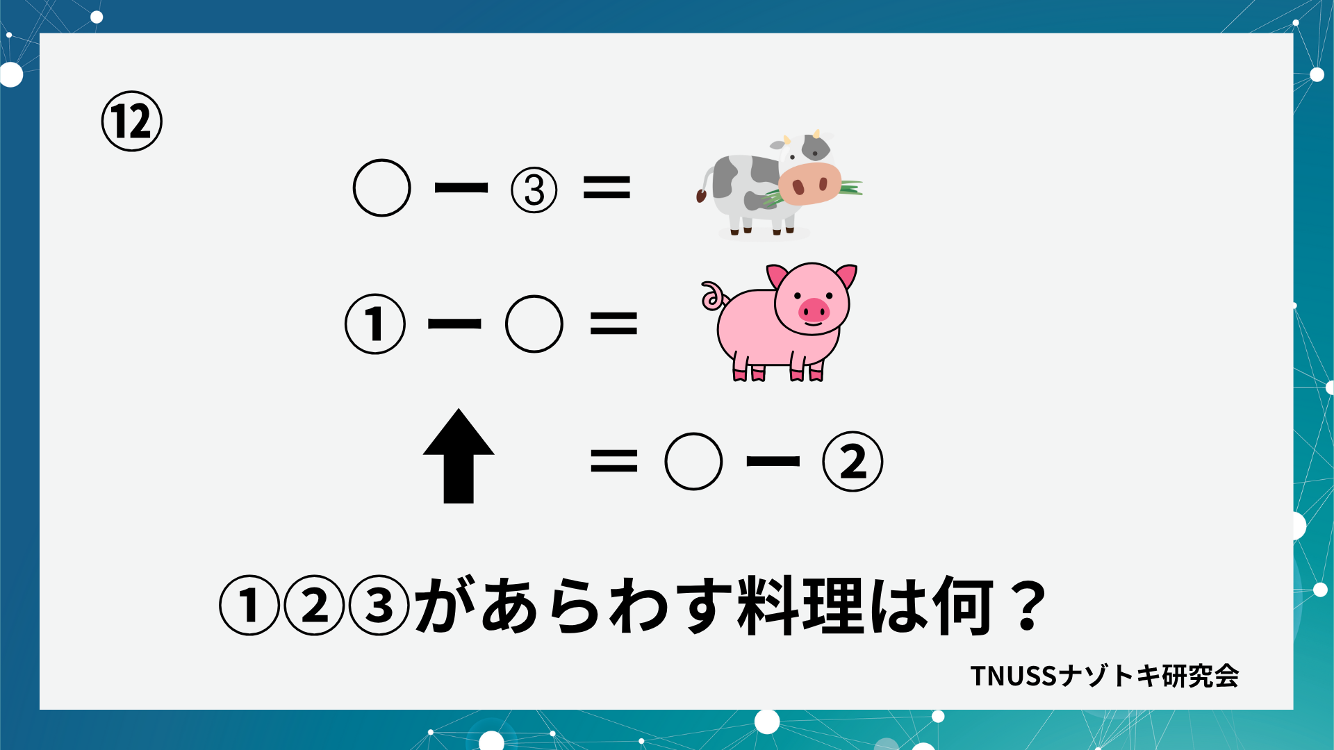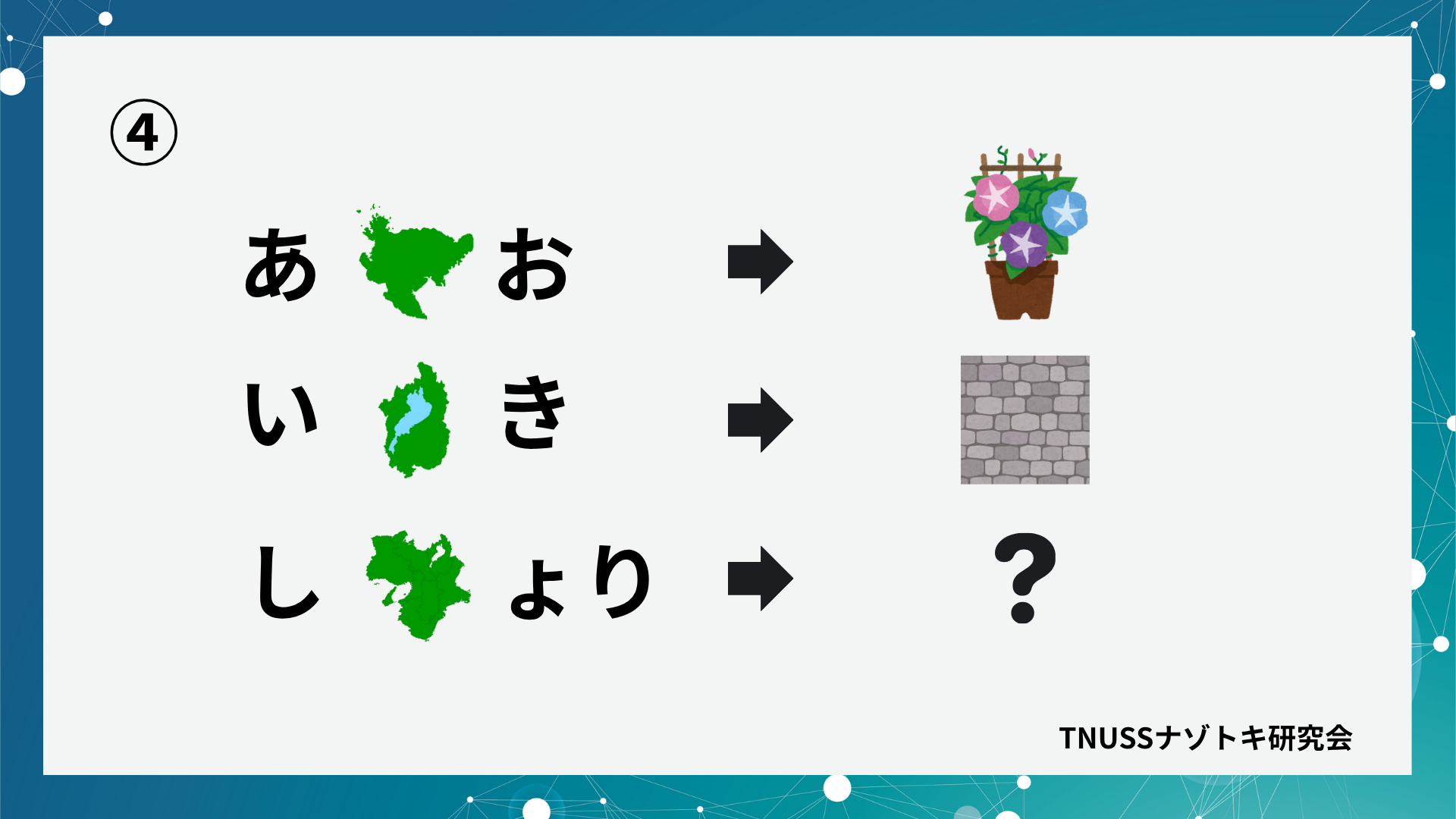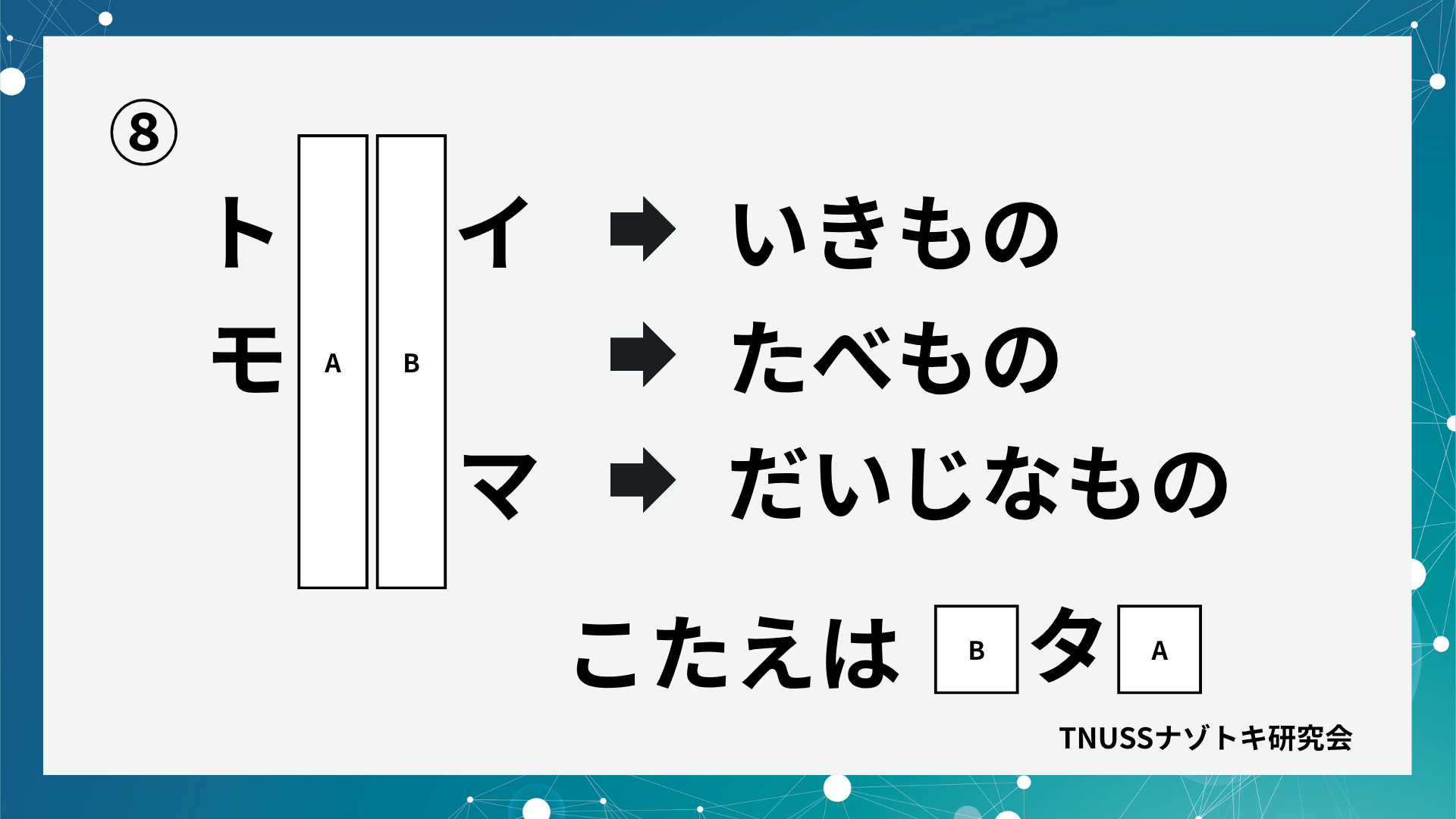 これまで毎週土曜日にSNSで公開していた謎解き問題を一挙に掲載します。本校のTNUSSナゾトキ研究会が作成した問題にチャレンジしてみてください。