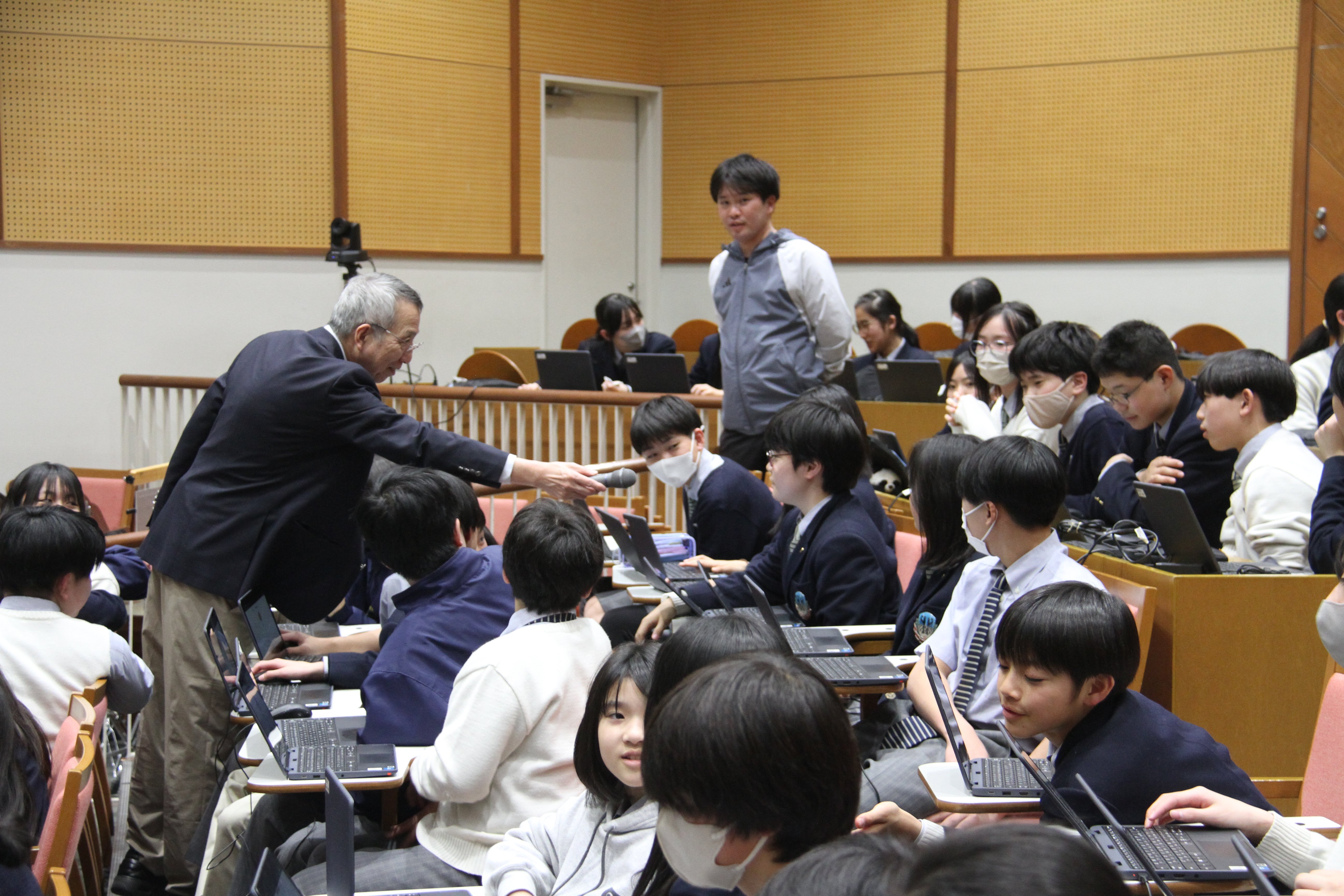 グローバル・エシックス今回のテーマは「中等の歴史」と銘打って、卒業生の動向や理念そして校歌の意味など中等の存在意義を自分で確かめる格好の機会となりました。教育理念の3リスペクトや校章のラテン語の意味など設立23年で積み上げてきた諸々のもの。たとえば基本スタイルがチノである理由は校外研修で英国の芝生に座ってもいいような素材だということ。そして不易流行で時代と共に新たな価値観を取り入れて発展していることに生徒も自分なら今後どうしたいという主体的な意見も出ました。ますます中等らしく高みに進化していくことを実感できた授業でした。