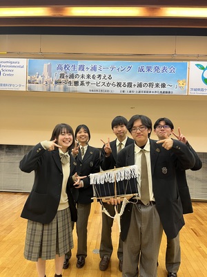 2月14日(土)に実施された霞ヶ浦ミーティング成果発表会に本校科学部が参加しまた。本校科学部は化学班,物理班,生物班の各班に別れて霞ヶ浦に関する探究活動を実践してきました。最終的な研究成果を「力学で見る霞ヶ浦帆引き船のユニークさと霞ヶ浦水質浄化について」と題して口頭発表しました。