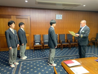 令和5年度から継続してきたこのボランティア活動に対し,JR東日本より感謝状をいただきました。 土浦統括センターの所長様が来校され,多くのプランターの植え替え活動に参加してきた生徒が代表として感謝状を受け取りました。
