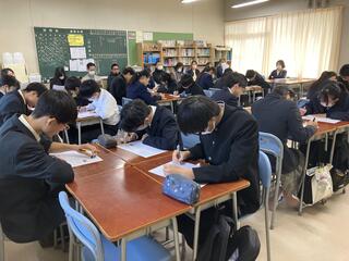 全体説明や体験授業を通じて,SHクラスでの具体的な高校生活をイメージしていただけたことと思います。 特に在校生と一緒に問題に取り組む体験授業は大変好評で,生徒も受験生も楽しみながら取り組んでおりました。