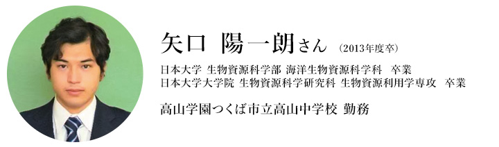 クラスの担任として、人としての成長を願い、また理科の授業を通して科学の面白さを一人でも多くの生徒に知ってもらいたいと思い、大学等で得た多くの知識をもとに日々研鑽しています。先生の授業が面白い。理科が楽しい。と言ってもらえた時や生徒たちが成長した時や部活動などで力を発揮した時には大きな喜びを感じます。