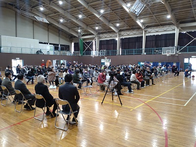 当日は,茨城県南西部を震源とする震度6強の地震が発生したとの想定に基づき,近隣住民の方々が,各自でのシェイクアウト訓練を実施したのち,各地区で自主防災組織による安否確認等を行い,指定緊急避難場所である本校の体育館に避難しました。