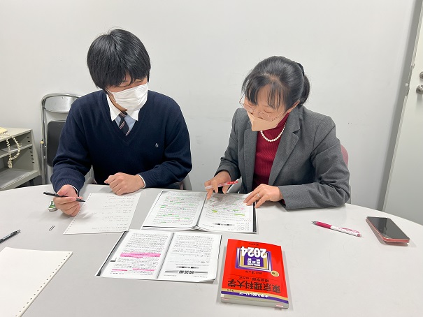 本校では放課後20:00まで自習することができ,学習時間と休憩のメリハリをつけて有効に活用しています。先生方もすぐ質問に応えてくれます。3年生は現在受験する大学毎に個別対策を行っています。