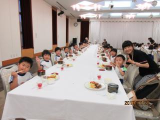 お泊り保育 ③大食堂での夕飯。みんなもりもり食べていました。 この後、花火をしたり、温泉に温まり・・・。すぐに寝てしまう子。なかなか寝付けず、ごろごろする子。 日付が変わる頃には、みんなの寝息が聞こえてきました・・・。 |