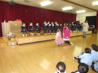 1月生まれの誕生会をおこないました。月の歌は、年少…ゆきのぺんきやさん、年中…お正月遊び歌、年長…ハーモニーです。今月は、ねずみ年にちなんで「ネズミさんクイズ」をしました。ネズミが行く学校は?などなど…。みんなとんちをきかせて答えていました。