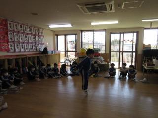 お友達に見守られる中行った縄跳び大会。跳ぶ方も、見守る方も真剣です!年長になると緊張感も漂います。最後まで諦めず跳び続ける姿に子ども達の成長を感じられる大会となりました。