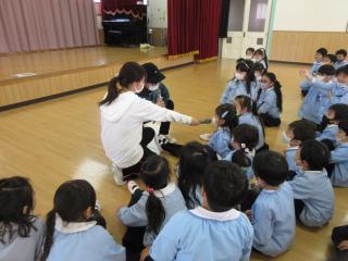 各学年でホールに集まり、防犯訓練を行いました。知らない人に声をかけられたり、連れていかれそうになったらどうしたらいいのか、紙芝居や先生たちの実演を見てみんなで考えました。「いか ・の・ お ・す・ し」も覚えました!!