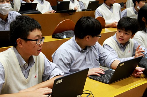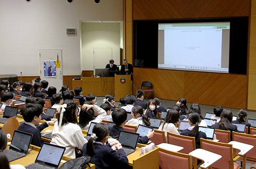 グローバル・エシックス今回のテーマは「中等の歴史」と銘打って、卒業生の動向や理念そして校歌の意味など中等の存在意義を自分で確かめる格好の機会となりました。教育理念の3リスペクトや校章のラテン語の意味など設立23年で積み上げてきた諸々のもの。たとえば基本スタイルがチノである理由は校外研修で英国の芝生に座ってもいいような素材だということ。そして不易流行で時代と共に新たな価値観を取り入れて発展していることに生徒も自分なら今後どうしたいという主体的な意見も出ました。ますます中等らしく高みに進化していくことを実感できた授業でした。