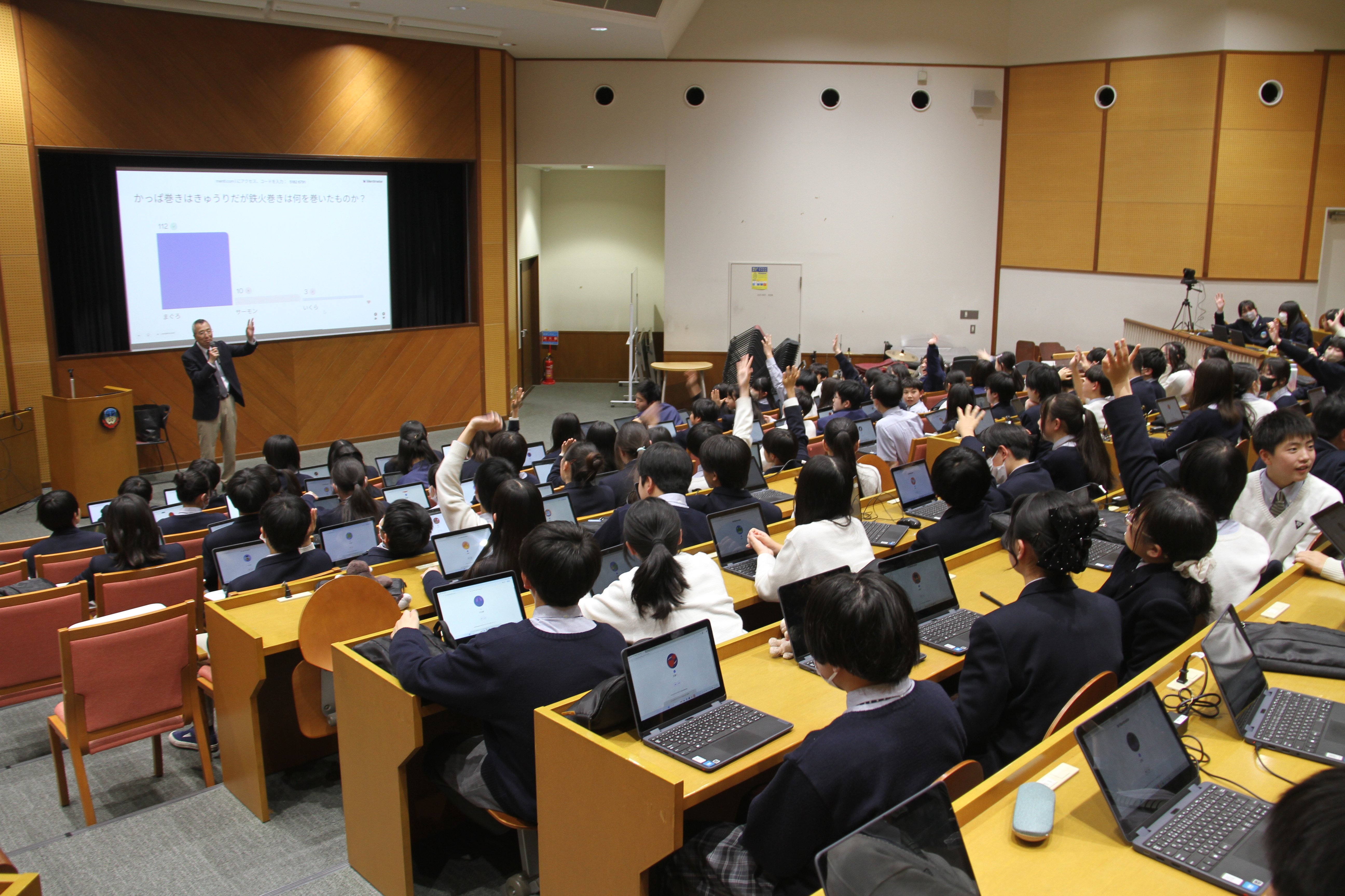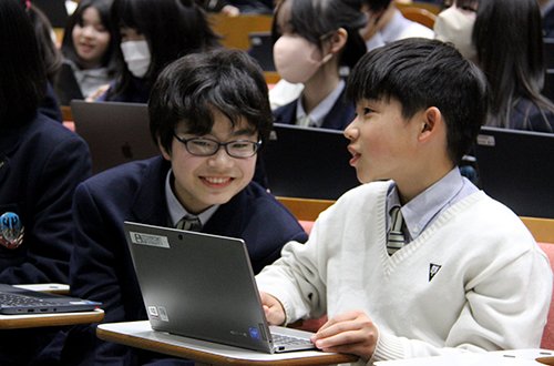 グローバル・エシックス今回のテーマは「中等の歴史」と銘打って、卒業生の動向や理念そして校歌の意味など中等の存在意義を自分で確かめる格好の機会となりました。教育理念の3リスペクトや校章のラテン語の意味など設立23年で積み上げてきた諸々のもの。たとえば基本スタイルがチノである理由は校外研修で英国の芝生に座ってもいいような素材だということ。そして不易流行で時代と共に新たな価値観を取り入れて発展していることに生徒も自分なら今後どうしたいという主体的な意見も出ました。ますます中等らしく高みに進化していくことを実感できた授業でした。