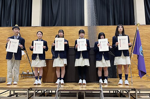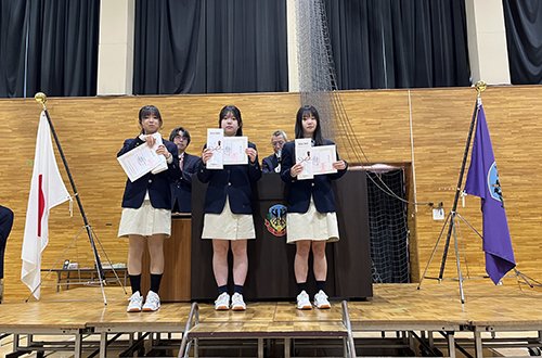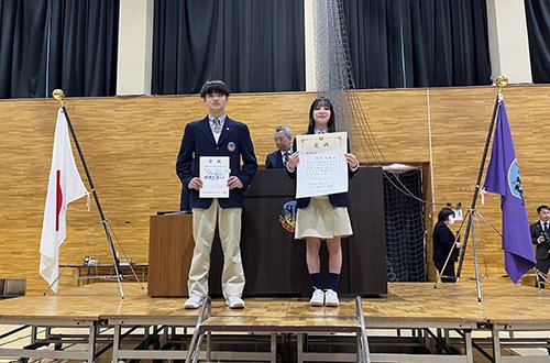 表彰では,学業が優秀であった生徒(各学年1名)に「校長賞」が贈られました。そのほかにも部・サークルでの入賞やコンクールでの入賞など,幅広い分野での表彰を行いました。