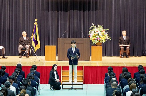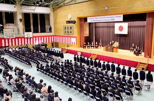 式典では,理事長をはじめ,ご来賓の方々から温かいお祝いのお言葉をいただきました。また,在校生代表からの歓迎の言葉に対し,新入生代表の2名は日本語と英語の両言語で,これから始まる学校生活への期待と決意,そして支えてくださる方々への感謝の気持ちを力強く語ってくれました。