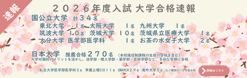 | 2026.01.08 | 大学入試合格状況を掲載しました(2月12日現在)New | |