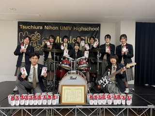 9/23火祝に行われた「第11回スニーカーエイジ関東甲信越地区大会」において,本校代表バンドが「ベストスマイル賞」を受賞いたしました。この副賞として,トップサポーターである牛乳石鹸共進社様より,賞状のほか,「牛乳石鹸オリジナルギター」と同社の商品である「SkinLife泡洗顔」を1年分頂戴いたしました。 いただいたオリジナルギターは,ピックガードと同じ「牛柄」のストラップを付けて,部活動の練習に役立て,SkinLifeは部員達で分けて使わせていただきます。 |