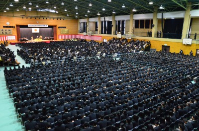 春の訪れを予感させるような晴天の下,第52回卒業式が本校第一アリーナにて挙行されました。日本大学医学部長の高山先生をはじめ,多くの来賓をお迎えし,厳粛な雰囲気の中,542名の3学年生徒が巣立ちの日を迎えました。