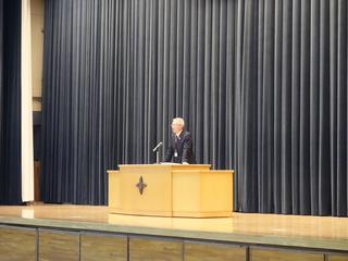 終業式では,吉田校長からご講話をいただきました。吉田校長からは,2学期に行われた茨城国体や体育祭などの行事を振り返りながら,3学期に受験を控える3年生の生徒に向けて激励の言葉がありました。また,生徒指導部主任の鳥居先生からは,冬休みの過ごし方について,特にSNSのトラブルに十分気を付けるようにとのお話がありました。