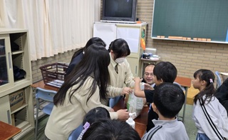 家庭科愛好会の生徒がつくったカレーを振る舞い,レクリエーションの一環としてお米を測る体験も実施しました。
