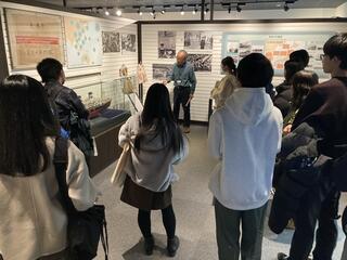 ガイドの方の解説を受けながら,シベリア抑留や旧満州国からの引揚げにまつわる資料や証言に触れ,戦争が人々の生活にもたらした深い傷と苦難について学んでいます。