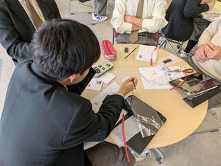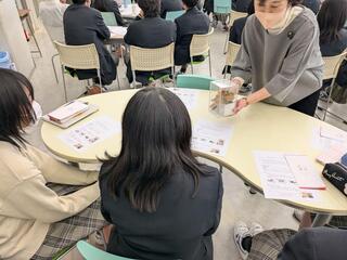 この講座では,東京の紅ミュージアムから講師をお招きし,紅花の歴史や近世社会の化粧文化についてご講義いただきました。 講義の後には,紅体験としてお守り作りを行い,生徒たちにとって貴重な学びと体験の場となりました。