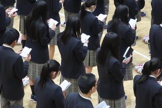 校歌と応援歌は生徒手帳にも記載されているので,ぜひたくさん練習をして歌えるようにしましょう。