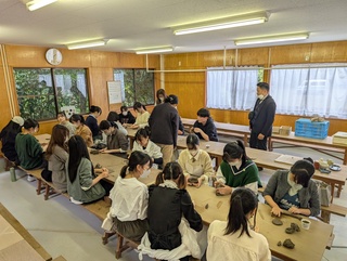 10月24日(金)に校外学習を実施しました。 本年度は,茨城県の伝統文化についての見聞を広げることを目的とし,午前は茨城県立陶芸美術館を見学し,午後に笠間市内の窯元で陶芸(手捻り)体験を行いました。陶芸体験では,生徒一人一人,コップやお皿等を粘土をこねながら製作し,色の指定をしました。 後日,色付けし窯で焼かれた完成品が送られてきます。