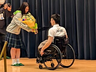 11月26日,全日制課程の体育館でアジアユースパラ競技大会の壮行会が実施されました。